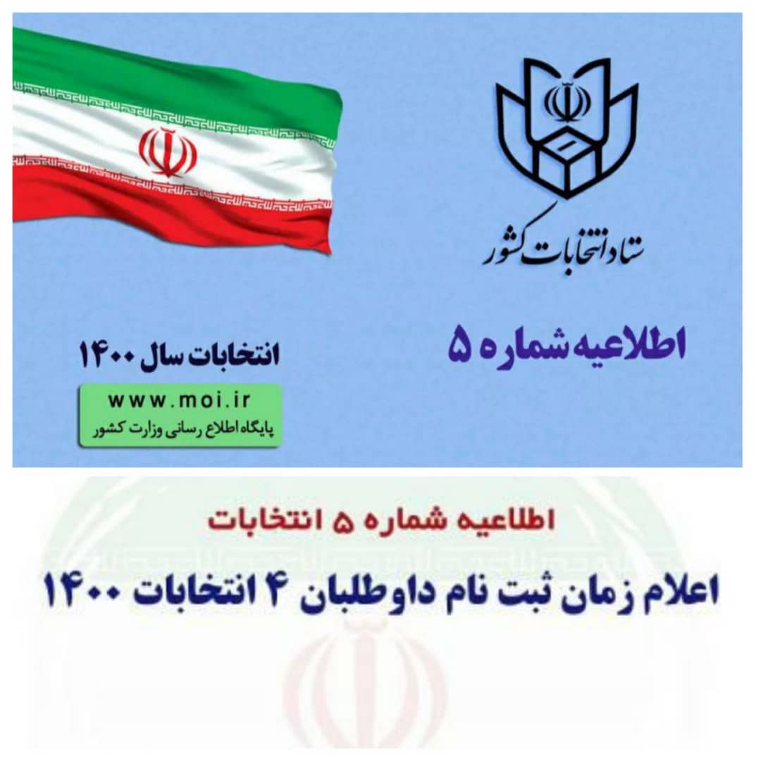اطلاعیه شماره (۵)  ستاد انتخابات کشور درباره ثبت نام داوطلبان انتخابات ریاست جمهوری