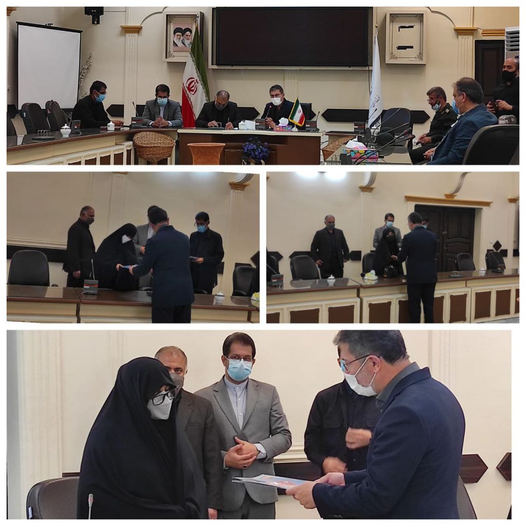 در ادامه همسران شهدای کارمند به نام های شهید حسین خوش سیرت ،شهید غلامرضا منعم ،شهید نادرحسن دخت شهرستان با اهدای لوح تقدیر تجلیل شد .