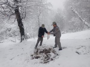 به دنبال بارش سنگین برف  و سردی هوا در ارتفاعات ماسال بخشی از زیستگاه‌های این شهرستان دانه پاشی شد